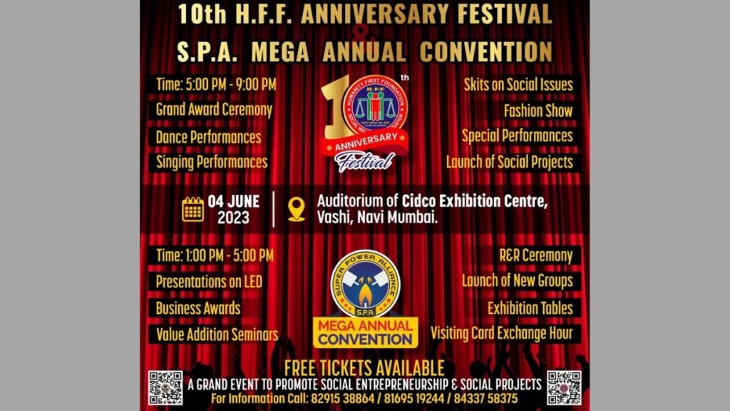 10th Anniversary Festival of NGO H.F.F. and S.P.A. 1st Mega Annual Convention to be held on 04th June 2023 at Vashi, Navi Mumbai.