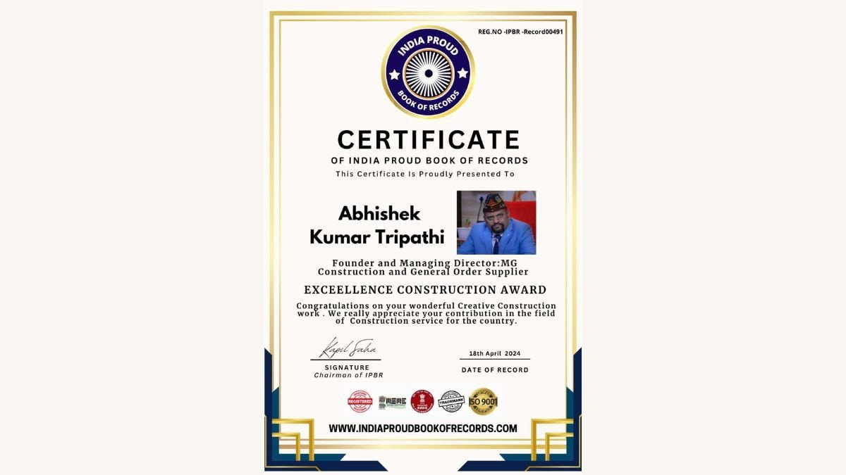 Lucknow (Uttar Pradesh) [India], April 30: Mr. Abhishek Kumar Tripathi from Lucknow, Uttar Pradesh State is Awarded “IPBR 2024 ” as the title of Best Social Services Award by India Proud Book of Records on 18th April 2024 for his Outstanding Contribution in the field of Social Activity . It has been recorded in India Proud Book of Record